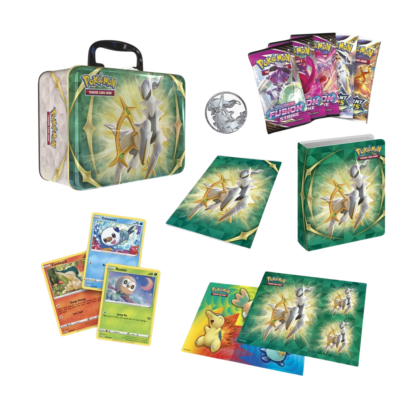 - 3 foil promo cards featuring Rowlet, Cyndaquil, and Oshawott