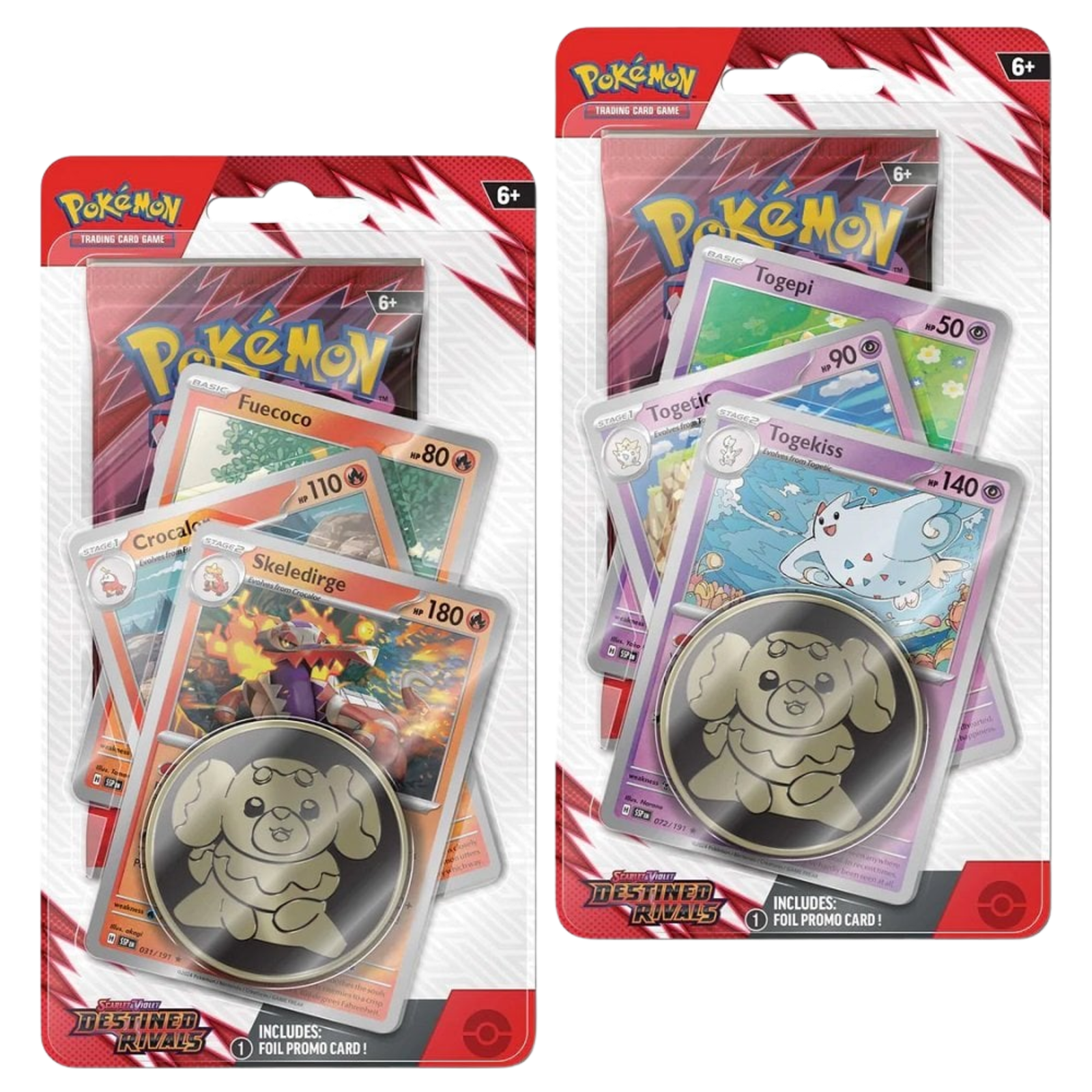 Step into the fierce competition of Scarlet & Violet – Destined Rivals with the Premium Checklane Blister! This upgraded blister format includes one booster pack from the explosive Destined Rivals expansion, a complete 3-evolution promo card line (either Cleffa → Clefairy → Clefable or Toxel → Toxtricity), and a collectible metallic coin, all sealed in an eye-catching package.