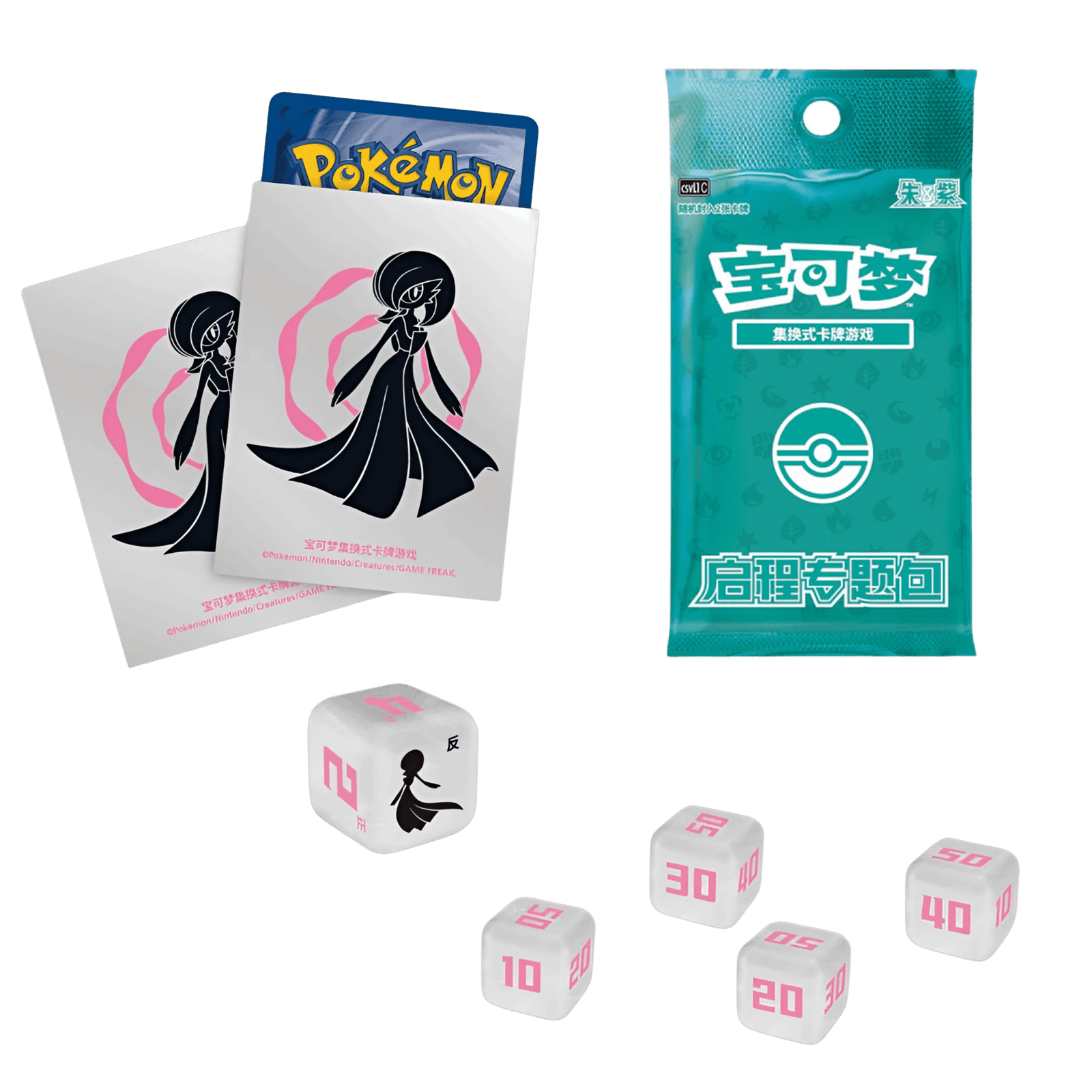 In this gift box, the theme revolves around Gardevoir’s graceful design—beautifully presented across all accessories. From the sleeves to the dice, the visual cohesion reinforces Gardevoir’s mystique and mental prowess.