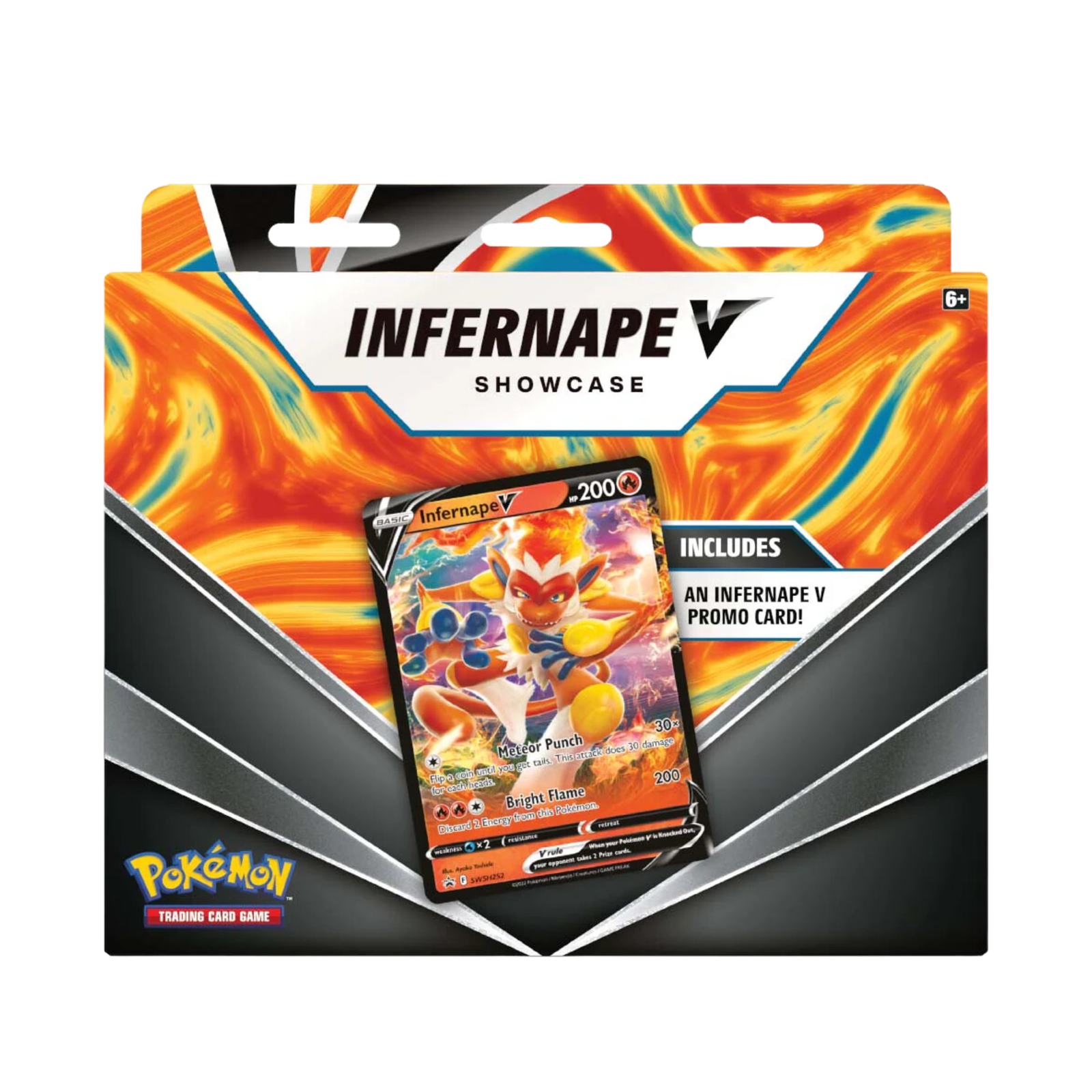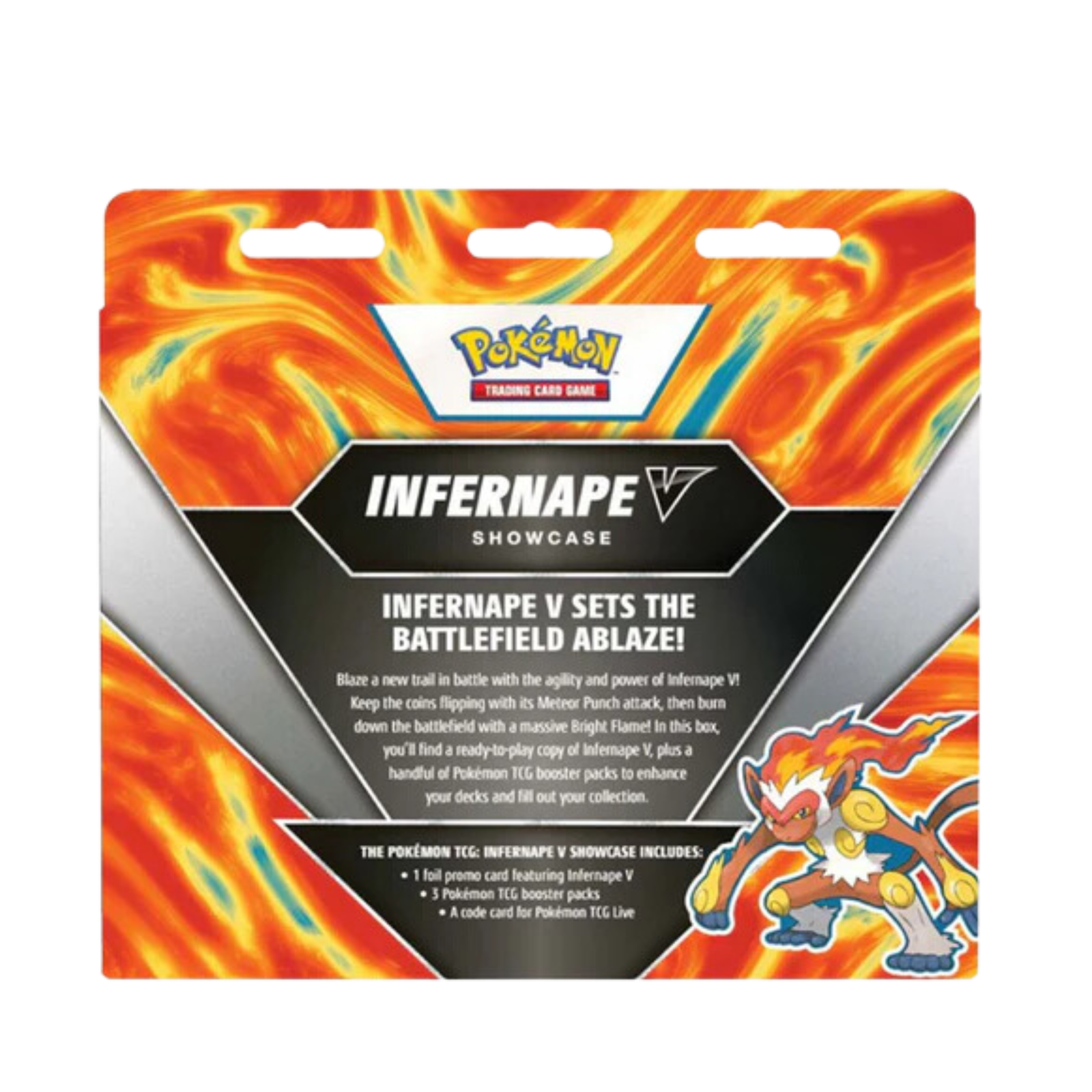 Bring the battle to your next gaming session with this Pokemon Infernape V Showcase Box. Featuring the powerful Pokemon Infernape V, it also includes a rainbow holofoil card and special energy to increase the power of your deck. Unleash the might of Infernape and dominate the Pokemon TCG!
