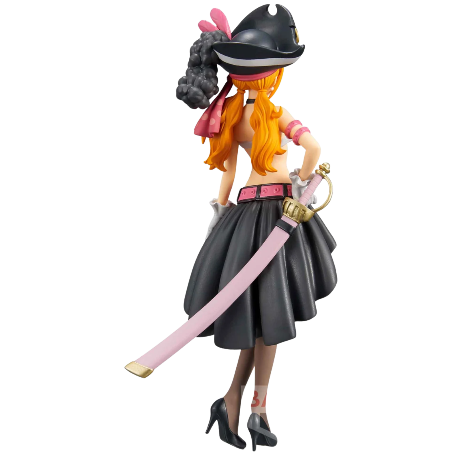 From the subtle curvature of her stance to the minute detailing on her dress and belt, Banpresto has taken great care to ensure this figure reflects the spirit and energy Nami carries in the film. Her sly smile and casual hand-on-hip pose make this more than just a toy—it’s a piece of One Piece artistry.