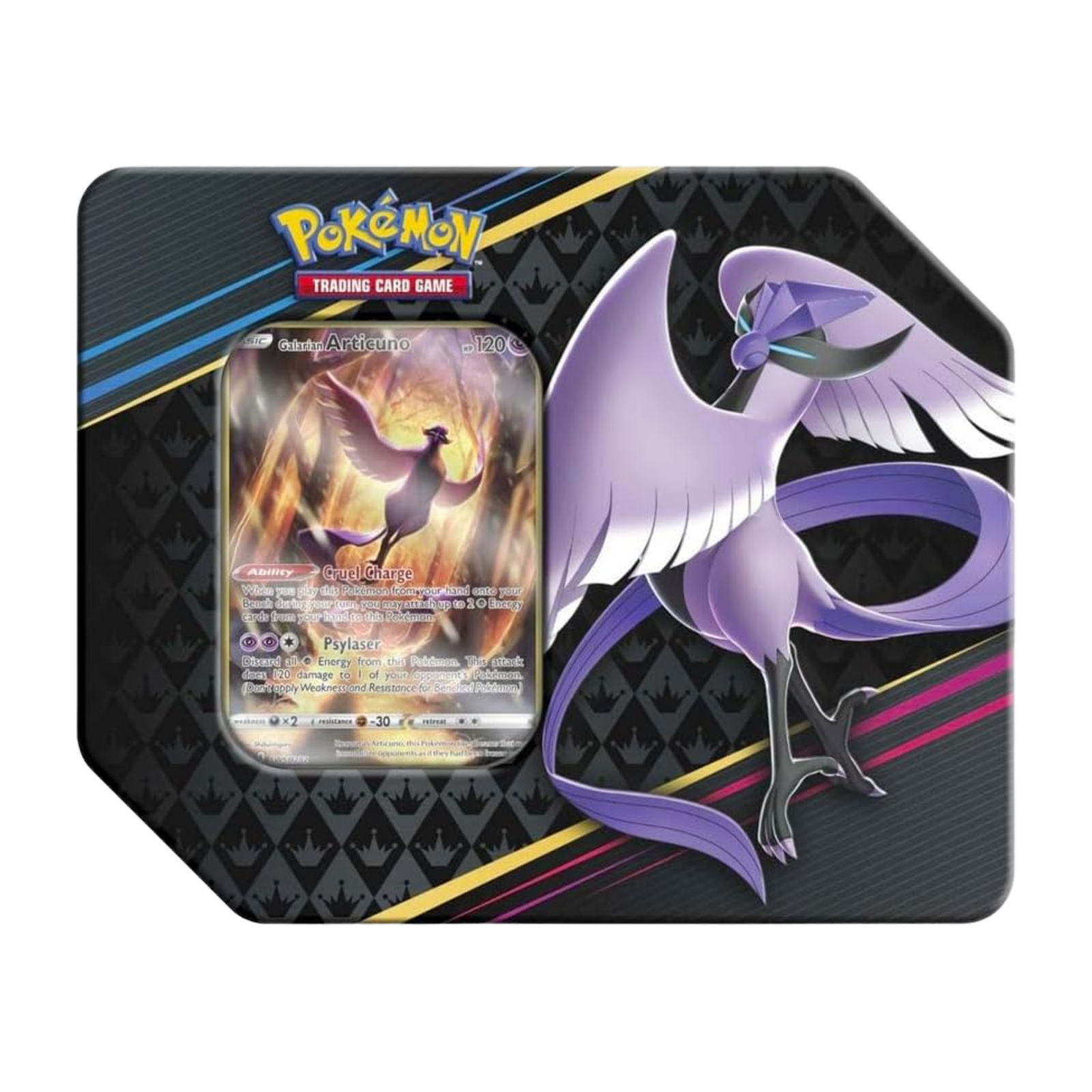 Dive into a world of legendary power, strategic gameplay, and visually stunning cards with the Pokemon Crown Zenith Tin! This special edition collectible TCG tin celebrates the power of Galar’s most iconic Legendary Birds—Articuno, Zapdos, and Moltres—in their Galarian forms.