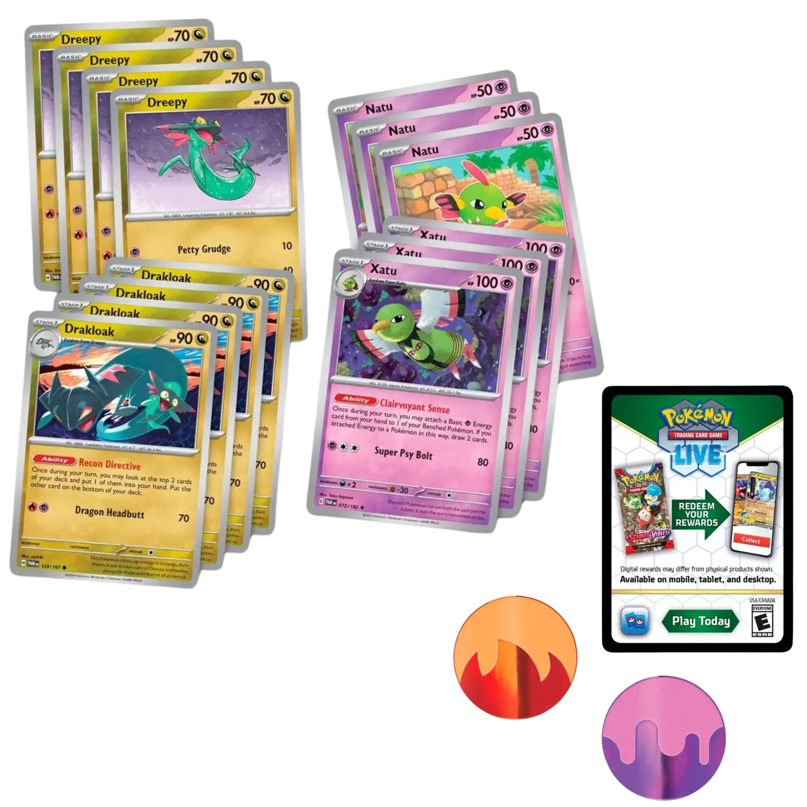 - 1 complete 60-card deck featuring Dragapult-ex and Fezandipiti-ex