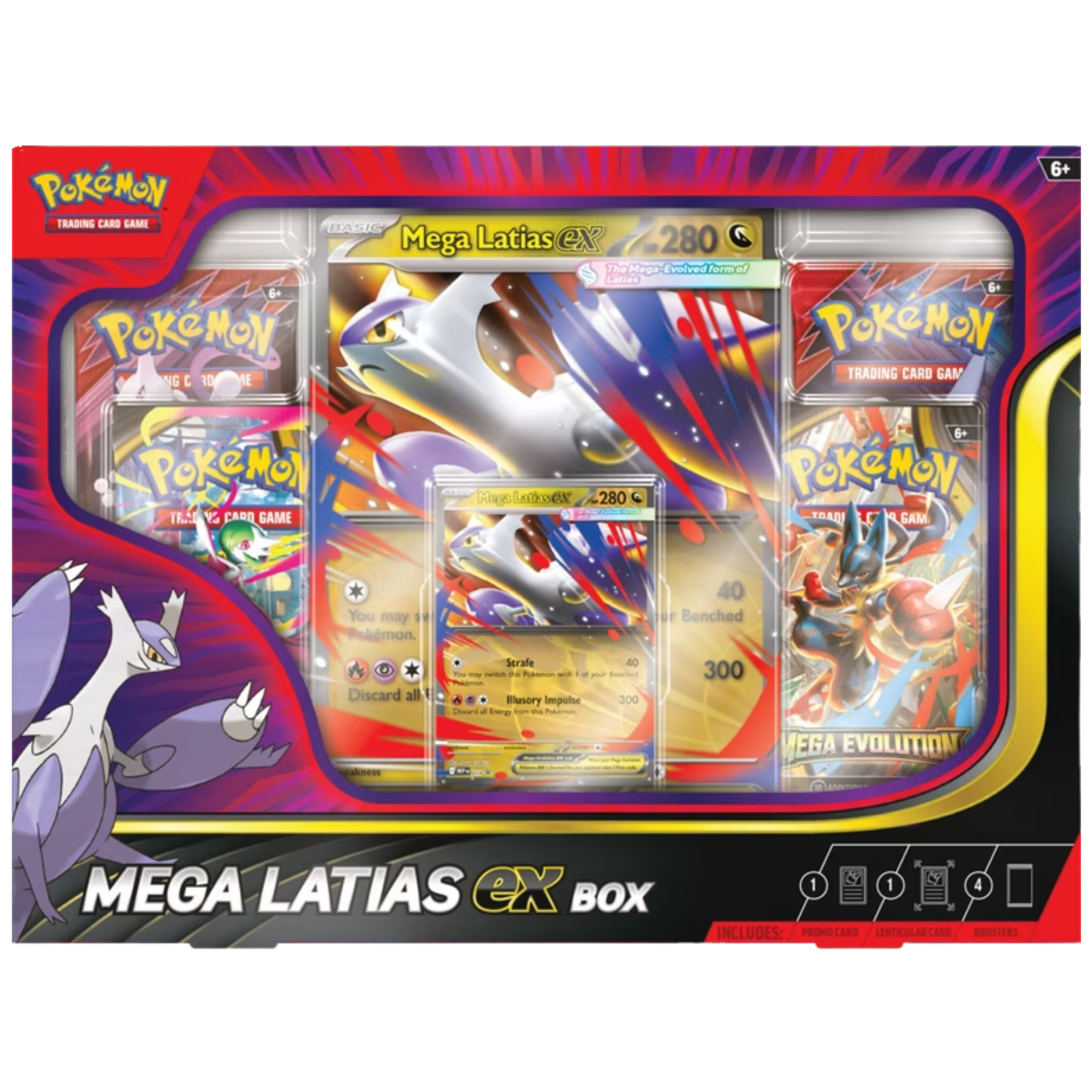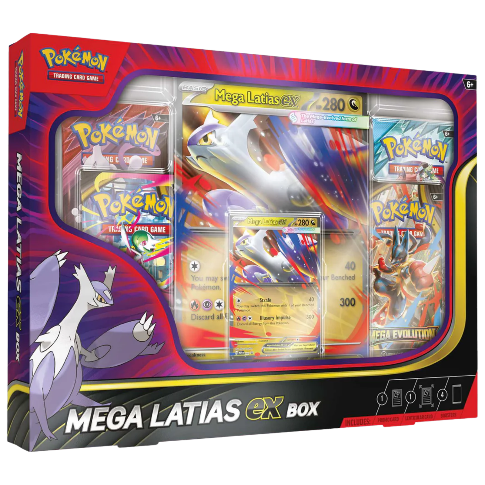 This Mega Latias ex Box is part of Pokémon’s continuing tradition of celebrating Legendary and Mega Evolution Pokémon with beautifully packaged collections. Each box gives fans the thrill of opening boosters while also featuring a centerpiece promo card that stands out in any binder or display case.