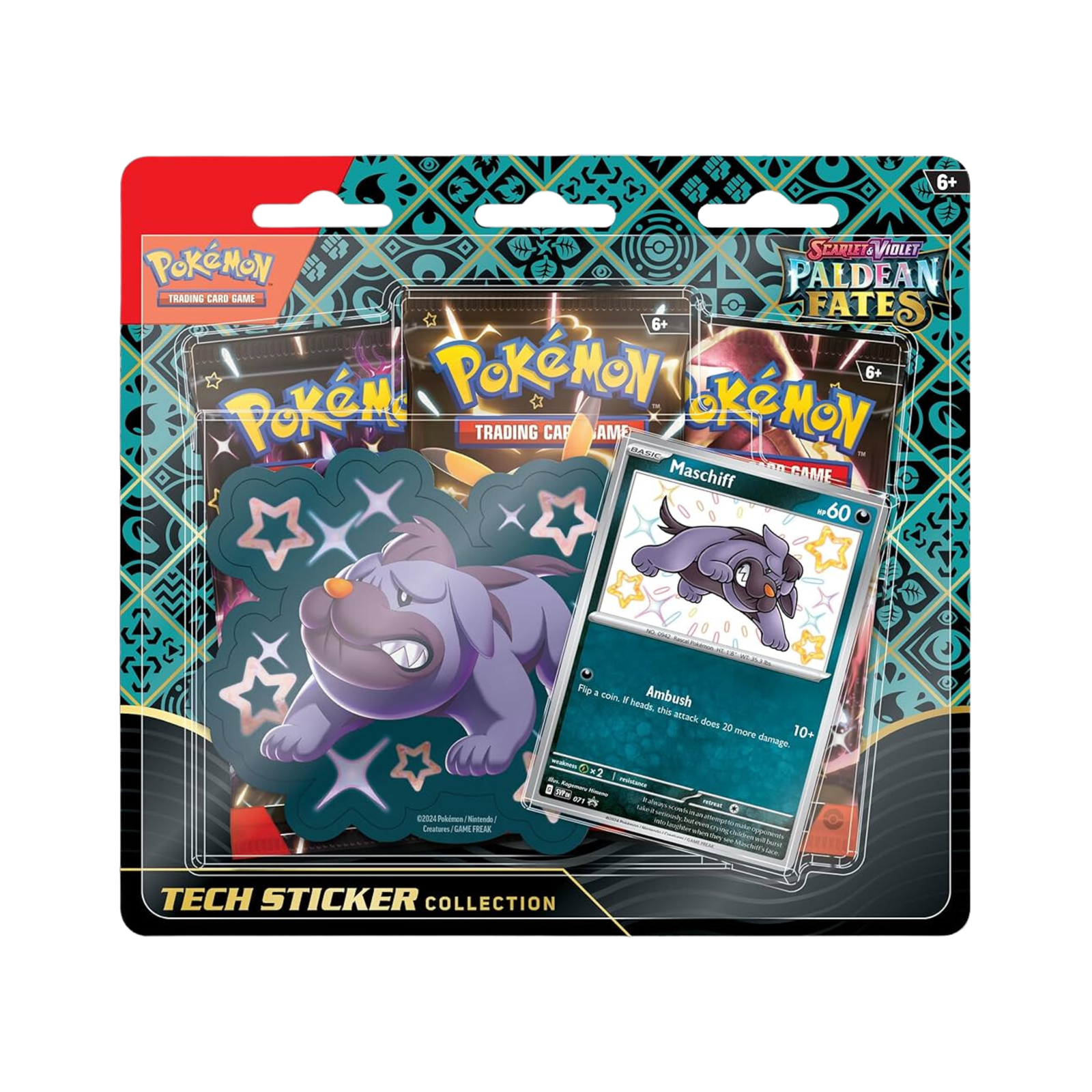 A must-have for collectors and TCG players this 2025! This special set includes a foil promo card, an exclusive tech sticker, and booster packs from the Scarlet & Violet—Paldean Fates expansion, offering fans a chance to pull ultra-rare, holo, and EX Pokémon cards.
