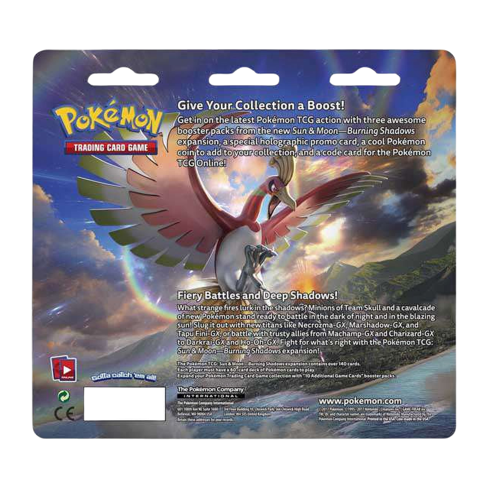What strange fires lurk in the shadows? Minions of team Skull and a cavalcade of new pokemon stand ready to battle in the dark of night and in the blazing sun! Slug it out with new titans like Necrozma- GX, Marshadow-GX, and Tapu Fini-GX, or battle with trusty allies from Machamp-GX and Charizard-GX to Darkrai-GX and Ho-Oh-GX. Fight for what’s right with the Pokemon TCG Sun & Moon Burning Shadows Expansion!